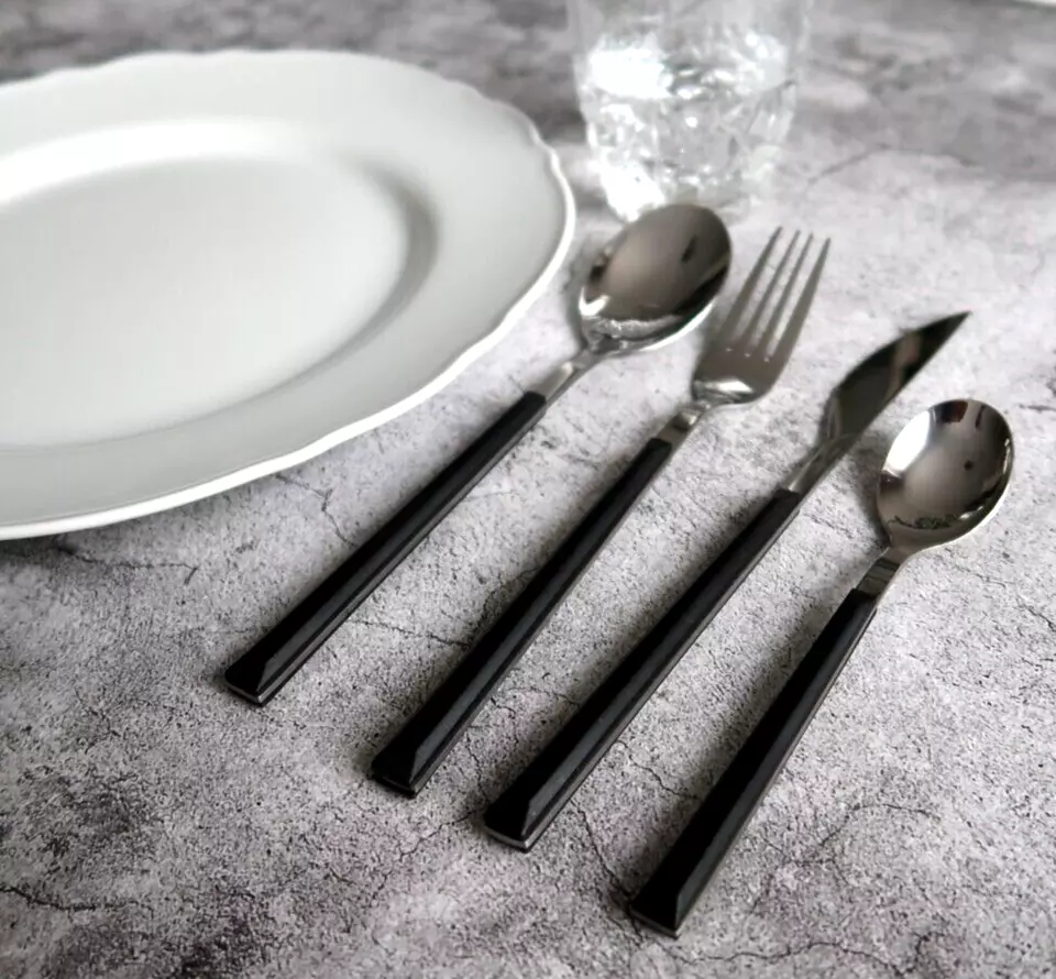 Its contemporary black design adds a striking visual contrast to any table setting, making it an excellent choice for modern kitchens and stylish dining rooms. The stainless-steel construction ensures long-lasting shine and resistance to rust, while the ABS handles offer reliable durability and low-maintenance cleaning.
