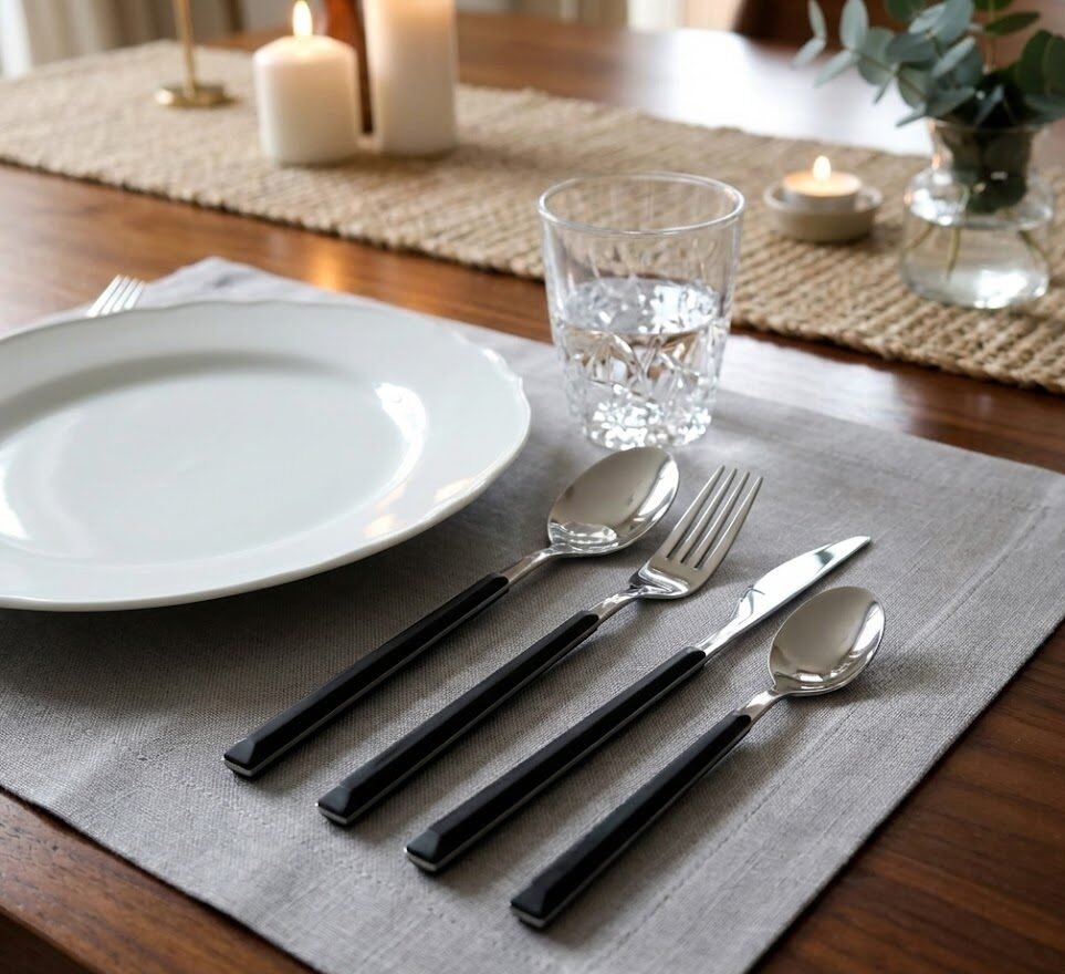 The BWD 16-Piece Modern Black Cutlery Set offers a sleek and contemporary upgrade to any dining table. Crafted from high-quality stainless steel and designed with refined black ABS handles, this set blends durability, comfort and modern elegance in every piece.