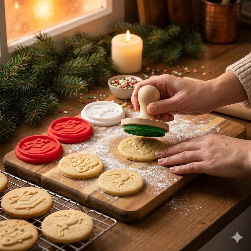 Bring a touch of Christmas magic to your baking with this charming and easy-to-use stamp set.